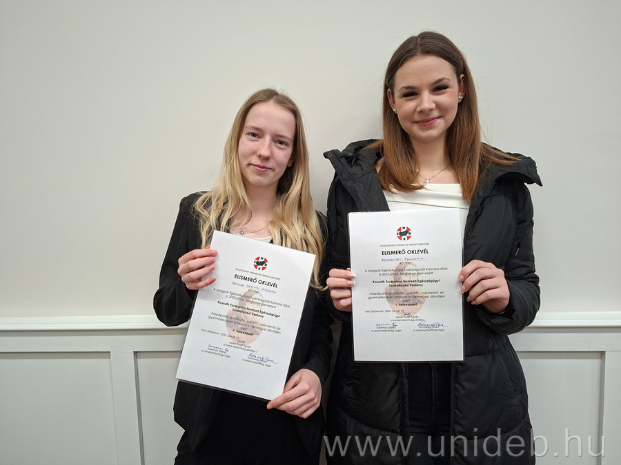 - Belgyógyászat és ápolástana: Mészáros Rebeka, Tömöri Lilla (12.f)